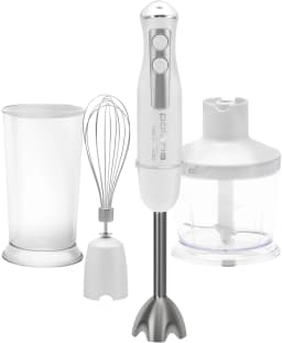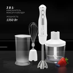 3 В 1: ИЗМЕЛЬЧИТЕЛЬ, МИКСЕР И БЛЕНДЕР. Ножи блендера PRO Blade особой формы из нержавеющей стали обеспечивают эффективное измельчение и смешивание. Кнопка включения. Скоростной режим ТУРБО. Насадка блендера и венчик из нержавеющей стали. Низкий уровень шума.