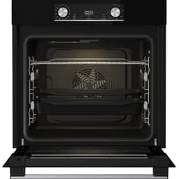 Электронное управление снабжено цифровым дисплеем и поворотными переключателями, которые являются утапливаемыми. Благодаря этому всегда можно понять включен прибор или нет, а также на них не скапливается пыль. Среди 13 режимов нагрева представлены разные сочетания традиционных верхнего и нижнего, гриля и вентилятора, но главной изюминкой модели является опция добавления пара, который сделает начинку еще нежнее и ароматнее, оставив корочку хрустящей и румяной. Таймер на отключение вовремя прекратит работу, а термощуп, телескопические направляющие и подсветка обеспечивают дополнительное удобство.