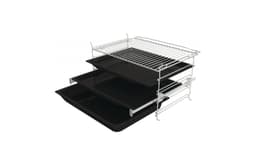 Прибор оснащен системой охлаждения DC+, телескопическими направляющими и четырьмя стеклами дверцы, что обеспечивает безопасность и удобство использования. В комплекте идут два мелких и один глубокий противни, а также решетка.