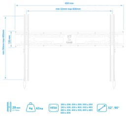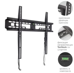 Простая установка при помощи встроенного водяного уровня. Надежная стальная конструкция максимальная нагрузка до 65 кг. Крепление направляющей с «двойным крючком». Универсальная система крепления для любого телевизора с посадочными отверстиями от 32 до 600 мм по горизонтали и от 50 мм до 400 мм по вертикали. Минимальное расстояние до стены 28 мм. Система крепления TechLock обеспечивает легкий монтаж/демонтаж ТВ и его надежную фиксацию.
