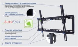Наклонная регулировка настенного кронштейна позволит наклонять экран наклонять вверх и вниз на 0-10°.