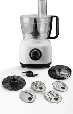 Держатель ножа для измельчения; мелкая шинковка; мелкая терка; крупная шинковка; диск для нарезки толстыми ломтиками; для замеса теста.