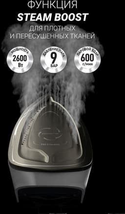 2 в 1: режим Smart Temp — поддержание оптимальной температуры подошвы + 4 температурных режима для профессионального ухода за каждым типом ткани Технология равномерного распределения тепла по подошве SMART HEAT. Керамическое покрытие подошвы — PRO 5 Ceramic.