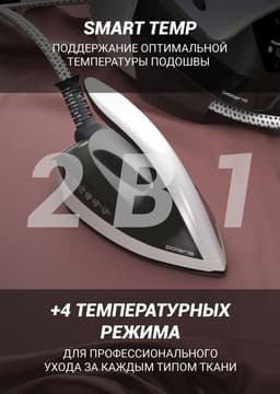2в1: режим Smart Temp — поддержание оптимальной температуры подошвы + 4 температурных режима для профессионального ухода за каждым типом ткани. Технология равномерного распределения тепла по подошве SMART HEAT.