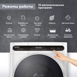 Хлопок, Быстрая стирка, Отжим, Деликатная стирка, Детские вещи, Обработка паром, Шерсть, Постельное белье, Полоскание и отжим, Очистка барабан