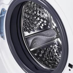 Баран выполнен из нержавеющей стали. Особая форма поверхности барабана бережно отстирывает и не повреждает ткань. Функция автоматической балансировки равномерно распределяет бельё и значительно снижает уровень шума при работе на высоких оборотах.