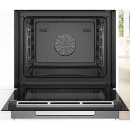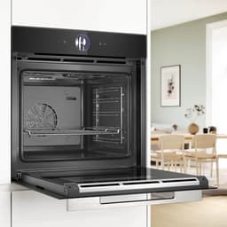 С первого взгляда, духовой шкаф привлекает своим стильным черным цветом, который легко впишется в любой интерьер. Сенсорное управление и 2.5″ цветной TFT дисплей с сенсорными кнопками делают использование удобным и простым. Электронные часы и таймер помогут контролировать процесс приготовления, а функция Home Connect позволит управлять духовкой даже на расстоянии.