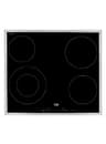 Встраиваемая электрическая плита с стеклокерамическим покрытием и элегантной металлической рамкой. Три отдельные зоны нагрева и две совмещенные с индикацией остаточного тепла, запрограммированная защита от перегрева и разлива жидкостей, удобная функция блокировки и автоматическое выключение.