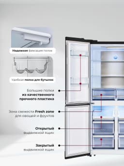 защита от детей, режим отпуск, система многопоточного охлаждения, суперзаморозка, суперохлаждение