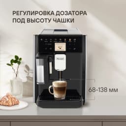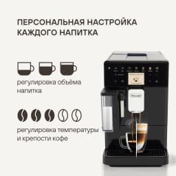 Также предусмотрена возможность приготовления напитков из молотого кофе. Устройство даёт возможность настроить любой напиток по вашим индивидуальным предпочтениям, а также сохранить их в памяти кофемашины. Вы можете регулировать объем напитка и молочной пены, степень крепости напитка и его тем-ру