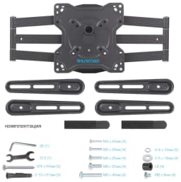 Кронштейн подходит для большинства телевизоров популярных брендов, таких как Samsung, LG, Sony, Panasonic, Sharp, Toshiba, KIVI, Xiaomi Mi, SUPRA, Hyundai, Erisson, Horizont, JVC, Thomson, HAIER, BBK, Витязь, Веко, BQ, OZON, SkyLine, Pioneer, Philips, Rolsen, Harper, Hisense, Hitachi, Polarline, Prestigio и других.