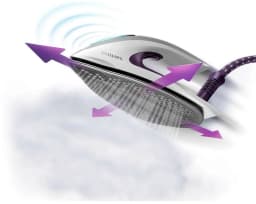 автоматическая регулировка силы пара, вертикальное отпаривание, противокапельная система, подставка для утюга, индикация включения, готовности к работе, уровня воды