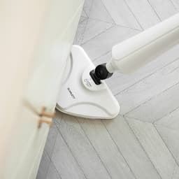 "Длинный шнур 7 метров. Увеличенная емкость бака для воды 350 мл. Легко очищает застарелые пятна. Подходит для уборки различных покрытий"