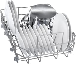 Модель относится к узким и отдельностоящим, что делает ее идеальным выбором для небольших кухонь или для тех, кто хочет экономить пространство. При этом, несмотря на свои компактные размеры, машина способна вместить до 10 комплектов посуды, что позволяет справиться даже с большим количеством грязной посуды после праздничного ужина. Особенностью данной модели является использование теплообменника для сушки посуды. Этот метод сушки более мягкий и экологичный, поскольку он использует остаточное тепло от последнего цикла мойки. Это не только экономит энергию, но и предотвращает появление на посуде разводов и пятен.