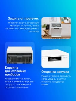 Машина предлагает широкий выбор программ и температурных режимов, обеспечивая идеальное мытье для любого типа посуды. Специальная функция «Самоочистка» обеспечивает дополнительное удобство, а функция «Быстрое мытье» позволяет сократить время мытья. Также стоит отметить систему защиты от протечек AquaStop, которая обеспечивает безопасность использования.