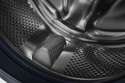 Барабан из нержавеющей стали с особой формой отверстий и гребней для равномерного распределения белья, лучшего смачивания и деликатной стирки.