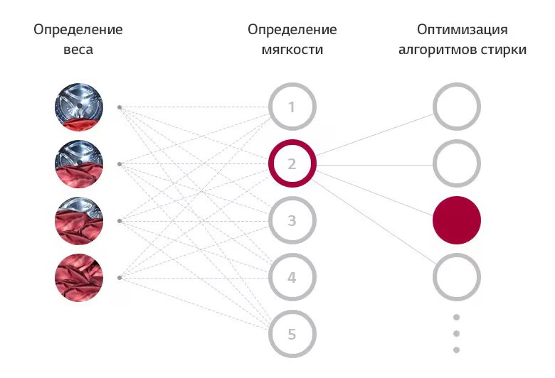 В память стиральной машины заложена база данных из 20 000 возможных сочетаний тканей. Анализ этих данных позволяет подбирать свой алгоритм стирки для каждого типа белья. Как результат - высокое качество стирки и на 18% меньше повреждений ткани.