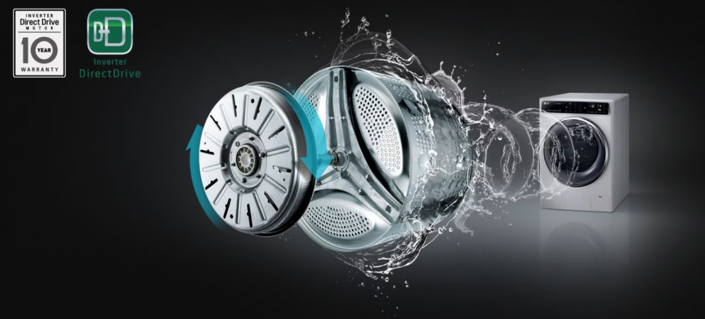 Система прямого привода не имеет в своей конструкции щеток и ремня, поэтому в процессе работы создает гораздо меньше шума. Поскольку ось вращения двигателя и барабана совпадает, уровень вибрации снижается до минимума.