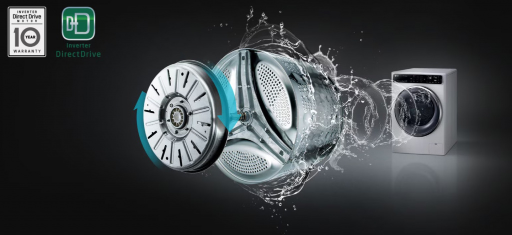 Мотор крепится напрямую к барабану, таким образом система прямого привода не имеет в своей конструкции легко изнашивающихся деталей, что обеспечивает высокую надежность и долговечность работы мотора.