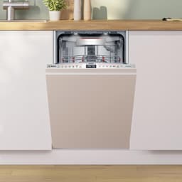 Посудомоечная машина Bosch SPV6YMX08E - это современное устройство, которое поможет вам справиться с неприятной рутиной бытовой жизни - мытьем посуды. Это встраиваемая модель, которая идеально впишется в любой интерьер кухни, не нарушая ее гармонии. Вместительная и узкая, она способна разместить до 10 комплектов посуды, что делает ее идеальным выбором для больших семей или тех, кто любит устраивать домашние вечеринки. Дизайн машины отличается строгими линиями и функциональностью. Серая панель управления, выполненная в стильном минималистичном дизайне, содержит интуитивно понятные сенсорные кнопки и дисплей. Она обеспечивает удобство использования и позволяет легко выбирать между шестью стандартными программами и пятью температурными режимами.